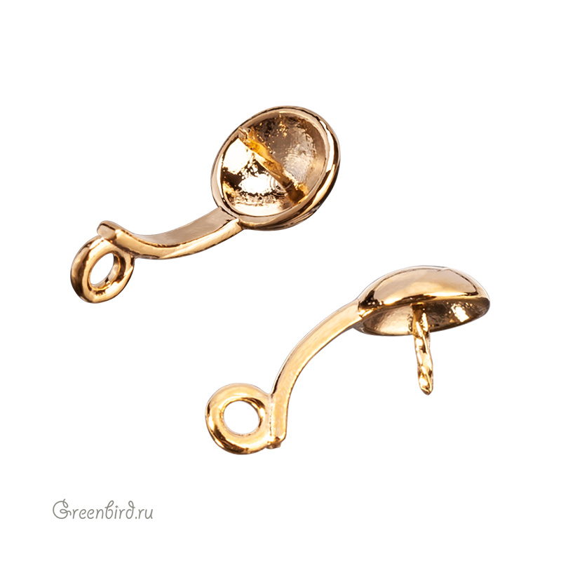 Фурнитура для бижутерии - компонент для вклеивания бусин. Материал: латунь, покрытие: золото. Диаметр чашечки: 5,4 мм, общий размер: 12,1 х 5,4 х 4,8 мм, колечко: 1,15 мм, штырек: 0,6 х 3,6 мм. Подходит для бусин 4 мм и хлопкового жемчуга 1-1,5 см. Производство: Корея. Цена указана за 1 штуку.