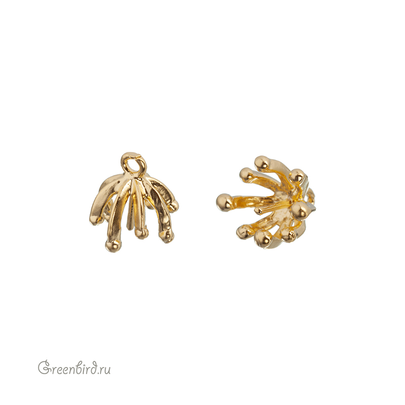 Фурнитура для бижутерии - компонент для вклеивания подвесок и бусин. Подходит для полупросверленного жемчуга удлиненной формы и капель. Материал: латунь, покрытие: матовое золото. Размер декоративного элемента с колечком: 8,3 х 8,6 мм, внутренний размер примерно 4,9 мм, длина штырька: 4,8 мм, толщина штырька: 0,8 мм, колечко: 1,1 мм. Производство: Корея. Цена указана за 1 штуку.