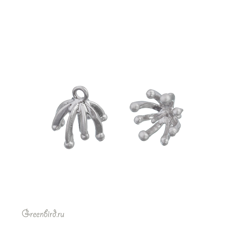 Фурнитура для бижутерии - компонент для вклеивания подвесок и бусин. Подходит для полупросверленного жемчуга удлиненной формы и капель. Материал: латунь, покрытие: матовый родий. Размер декоративного элемента с колечком: 8,3 х 8,6 мм, внутренний размер примерно 4,9 мм, длина штырька: 4,8 мм, толщина штырька: 0,8 мм, колечко: 1,1 мм. Производство: Корея. Цена указана за 1 штуку.