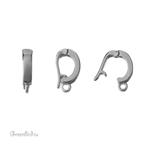 Фурнитура для бижутерии - бейл-замочек (разъемный бейл с застежкой по типу часового замка). Материал: латунь, покрытие: родий. Размер с колечком: 2,7 х 12,2 мм, внутренний размер: 4,3 х 6,2 мм, внутренний размер колечка: 1,3 мм. Производство: Китай. Цена указана за 1 шт.