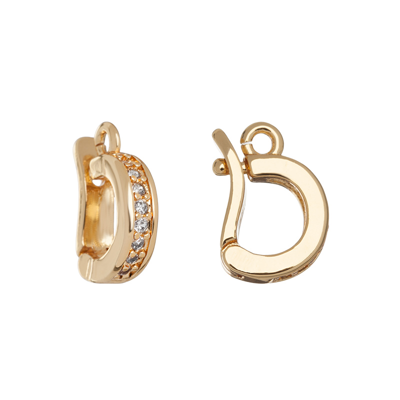 Фурнитура для бижутерии - бейл-замочек (разъемный бейл с застежкой по типу часового замка) с фианитами. Материал: латунь, покрытие: золото. Размер с колечком: 2,9 х 12 мм, внутренний размер: 4,5 х 5,7 мм, внутренний диаметр колечка: 1,2 мм. Производство: Китай. Цена указана за 1 шт.