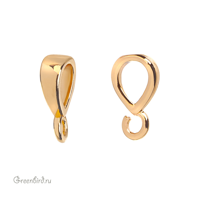 Фурнитура для бижутерии - коннектор-бейл с незапаянным колечком. Материал: латунь, покрытие: золото. Размер с колечком: 8,7 х 2,5 мм, внутренний размер бейла: 4,3 х 3,1 мм, внутренний размер колечка: 1,4 мм. Производство: Китай. Цена указана за 1 штуку.