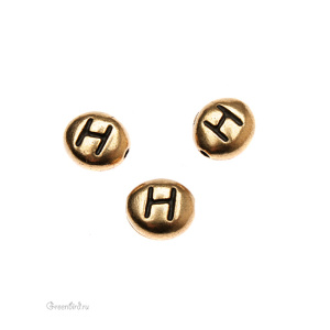Металлическая бусина овальная с буквой. Цвет: античное золото. Размер: 7 х 6 мм. Цена указана за 1 шт.