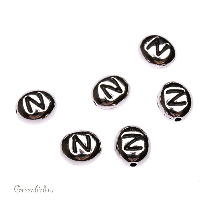 Металлическая бусина овальная с буквой. Цвет: античный родий (родий с чернением). Размер: 7 х 6 мм. Цена указана за 1 шт.