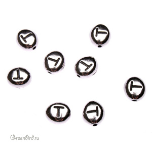 Металлическая бусина овальная с буквой. Цвет: античный родий (родий с чернением). Размер: 7 х 6 мм. Цена указана за 1 шт.