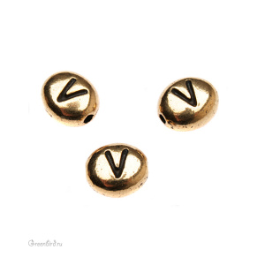 Металлическая бусина овальная с буквой. Цвет: античное золото. Размер: 7 х 6 мм. Цена указана за 1 шт.