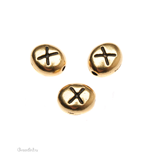 Металлическая бусина овальная с буквой. Цвет: античное золото. Размер: 7 х 6 мм. Цена указана за 1 шт.