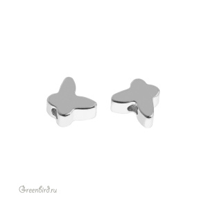 Металлическая бусина в форме бабочки с вертикальным отверстием. Материал: латунь, покрытие: родий. Размер: 6 х 5 мм, толщина: 2,7 мм, диаметр отверстия: 1,1 мм. Производство: Китай. Цена указана за 1 шт.