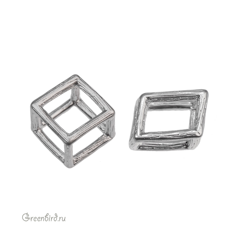 Металлическая бусина в форме наклонного параллелепипеда. Материал: латунь, покрытие: матовый родий. Размер: 11 х 8,3 х 11 мм, толщина каждой грани примерно 1,7 мм. Производство: Корея. Цена указана за 1 шт.
