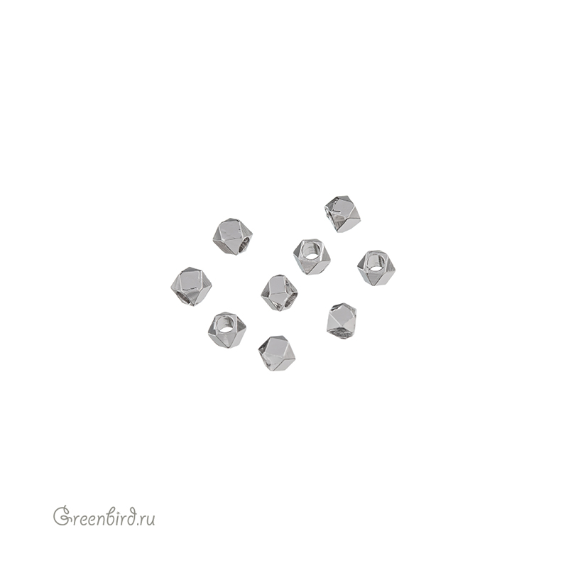 Металлическая бусина граненая. Материал: латунь, покрытие: родий. Размер: 2,5 х 2,55 мм, диаметр отверстия: 1,4 мм. Производство: Корея. Цена указана за 1 шт.