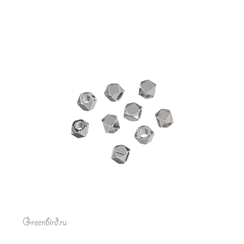 Металлическая бусина граненая. Материал: латунь, покрытие: родий. Размер: 3 х 3 мм, диаметр отверстия: 1,7 мм. Производство: Корея. Цена указана за 1 шт.