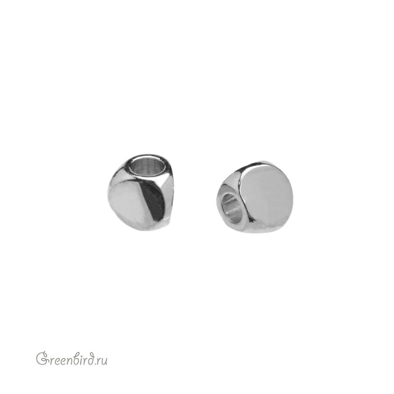 Металлическая бусина гладкая с тремя овальными гранями. Материал: латунь, покрытие: родий. Размер: 3,4 х 3,5 мм, диаметр отверстия: 1,6 мм. Размеры могут незначительно отличаться. Производство: Китай. Цена указана за 1 шт.