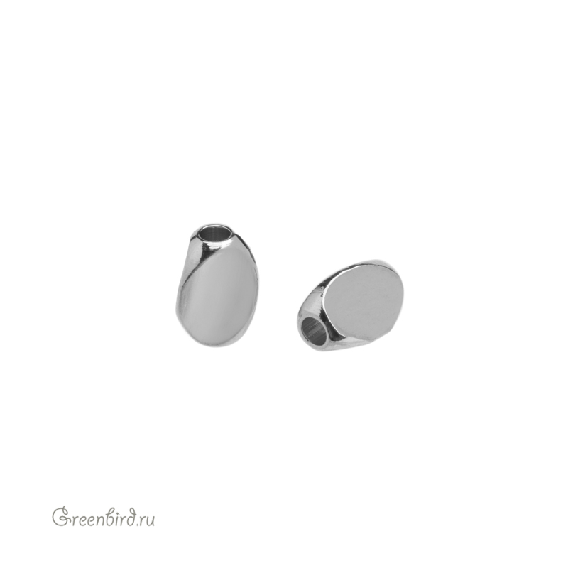 Металлическая бусина гладкая с тремя овальными гранями. Материал: латунь, покрытие: родий. Размер: 5,3 х 3,4 мм, диаметр отверстия: 1,2 мм. Размеры могут незначительно отличаться. Производство: Китай. Цена указана за 1 шт.