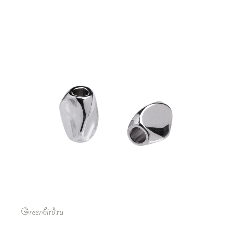 Металлическая бусина гладкая с тремя овальными гранями. Материал: латунь, покрытие: родий. Размер: 6 х 4,2 мм, диаметр отверстия: 1,8 мм. Размеры могут незначительно отличаться. Производство: Китай. Цена указана за 1 шт.