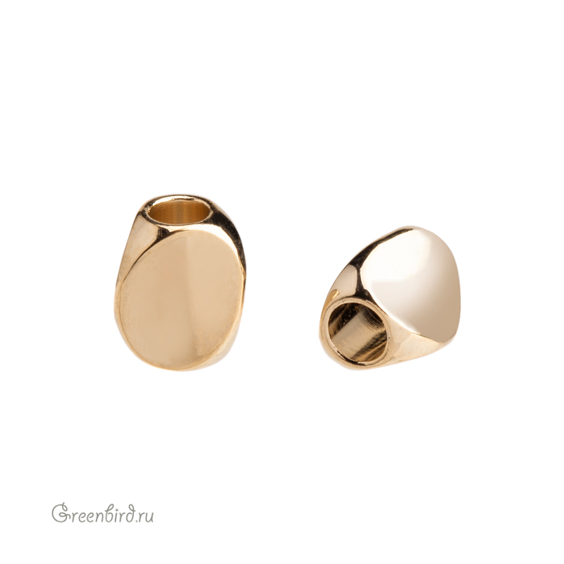Металлическая бусина гладкая с тремя овальными гранями. Материал: латунь, покрытие: золото. Размер: 8,1 х 6 мм, диаметр отверстия: 3,2 мм. Размеры могут незначительно отличаться. Производство: Китай. Цена указана за 1 шт.