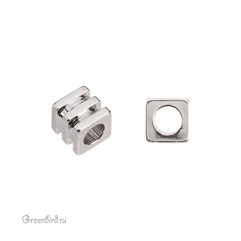 Металлическая бусина в форме ребристого куба. Материал: латунь, покрытие: родий. Размер: 3 х 3 х 3,05 мм, диаметр отверстия: 1,7 мм. Производство: Корея. Цена указана за 1 шт.