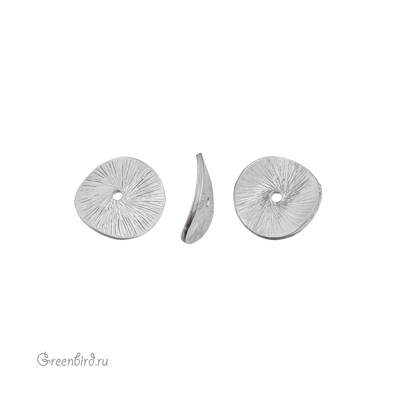 Металлическая бусина с текстурированием, может использоваться в качестве спейсера (разделителя) или чашечки для другой фигурной бусины. Материал: пьютер (оловянный сплав), покрытие: матовый родий. Размер: 15 х 14,8 х 3,1 мм, отверстие: 1,7 мм. Производство: Корея. Цена указана за 1 шт.