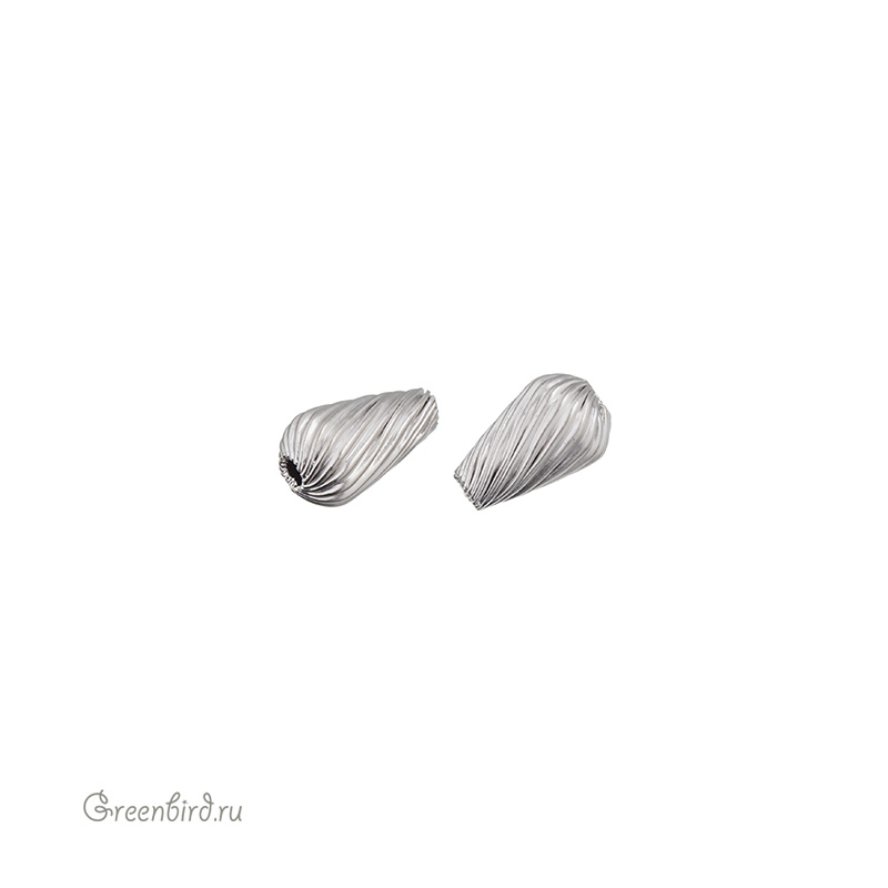 Металлическая бусина-капля полая со складчатой текстурой. Материал: латунь, покрытие: матовый родий. Размер: 9 х 5,3 мм, отверстие: 1-1,3 мм. Производство: Корея. Цена указана за 1 шт.