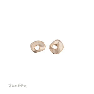 Металлическая бусина со смещенным отверстием. Материал: пьютер (оловянный сплав), покрытие: матовое золото. Размер: 6,8 х 5,8 х 1,6 мм, отверстие: 1,8-2 мм. Размер и форма могут незначительно отличаться. Производство: Корея. Цена указана за 1 шт.