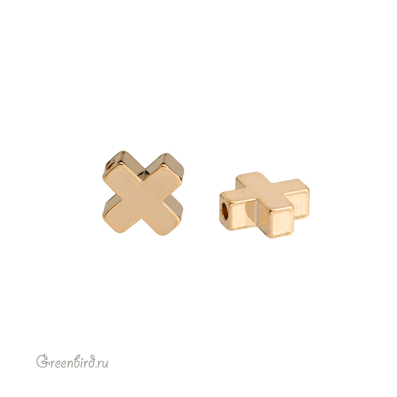 Металлическая бусина в форме плюсика (крестика). Материал: латунь, покрытие: золото. Размер: 8,2 х 8,3 мм, толщина: 3,1 мм, диаметр отверстия: 1,4 мм. Производство: Китай. Цена указана за 1 шт.