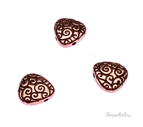 Металлическая бусина - плоская бриолетка (Briolette). Цвет: античная медь. Размер: 12 мм. Цена указана за 1 шт.