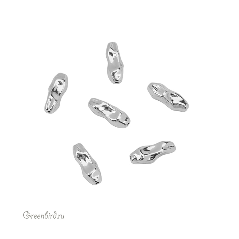 Металлическая бусина в форме барочной жемчужины-трубочки. Материал: латунь, покрытие: родий. Размер: 15 х 5,7 x 5 мм, отверстие: 1 мм. Производство: Китай. Цена указана за 1 шт.