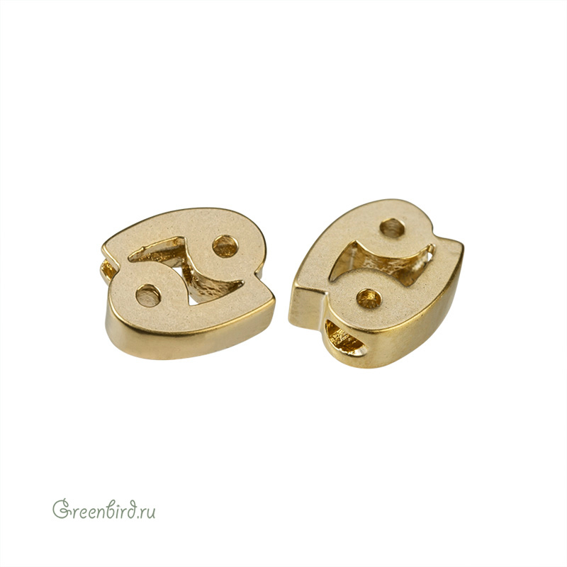 Металлическая бусина в форме зодиакального символа (Рак). Материал: латунь, покрытие: матовое золото. Размер: 7 х 5,7 мм, толщина: 2,6 мм, отверстие: 1,2 мм. Производство: Корея. Цена указана за 1 шт.