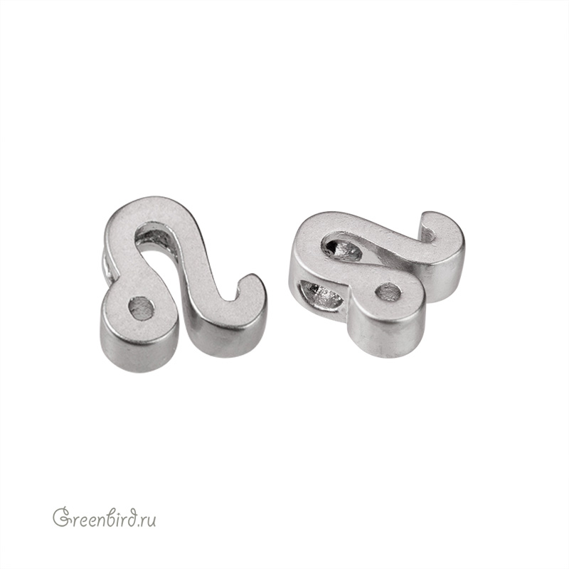 Металлическая бусина в форме зодиакального символа (Лев). Материал: латунь, покрытие: матовый родий. Размер: 6,7 х 7,1 мм, толщина: 2,7 мм, отверстие: 1,2 мм. Производство: Корея. Цена указана за 1 шт.