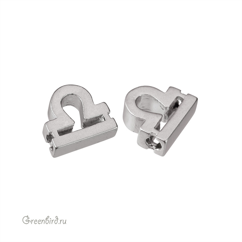 Металлическая бусина в форме зодиакального символа (Весы). Материал: латунь, покрытие: матовый родий. Размер: 7,2 х 6,7 мм, толщина: 2,7 мм, отверстие: 1,2 мм. Производство: Корея. Цена указана за 1 шт.