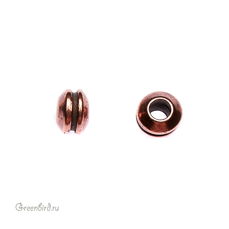 Металлическая бусина. Цвет: античная медь. Размер: 8 х 5 мм, отверстие: 2,5 мм. Цена указана за 1 шт.