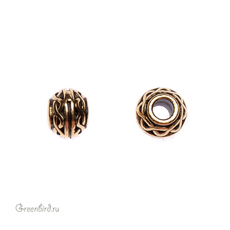 Металлическая бусина. Цвет: античное золото. Размер: 8 х 6 мм, отверстие: 2,5 мм. Цена указана за 1 шт.