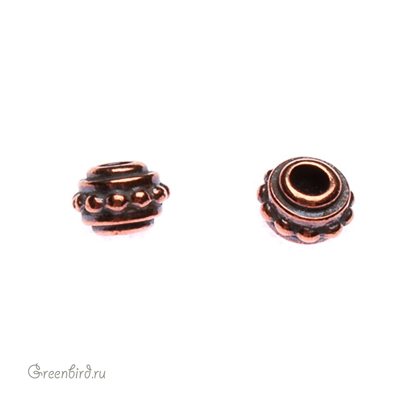 Металлическая бусина. Цвет: античная медь. Размер: 7 х 5 мм, отверстие: 2,5 мм. Цена указана за 1 шт.