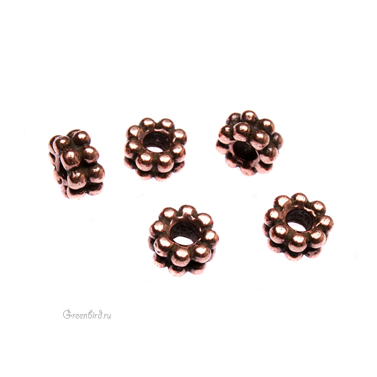 Металлическая бусина. Цвет: античная медь. Размер: 8 х 4 мм, отверстие: 2,5 мм. Цена указана за 1 шт.
