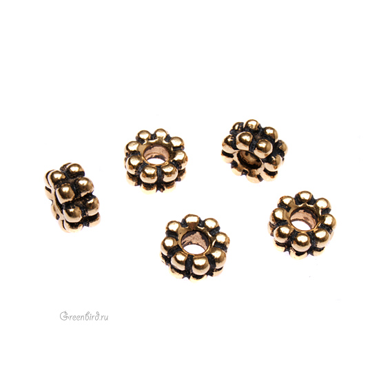 Металлическая бусина. Цвет: античное золото. Размер: 8 х 4 мм, отверстие: 2,5 мм. Цена указана за 1 шт.
