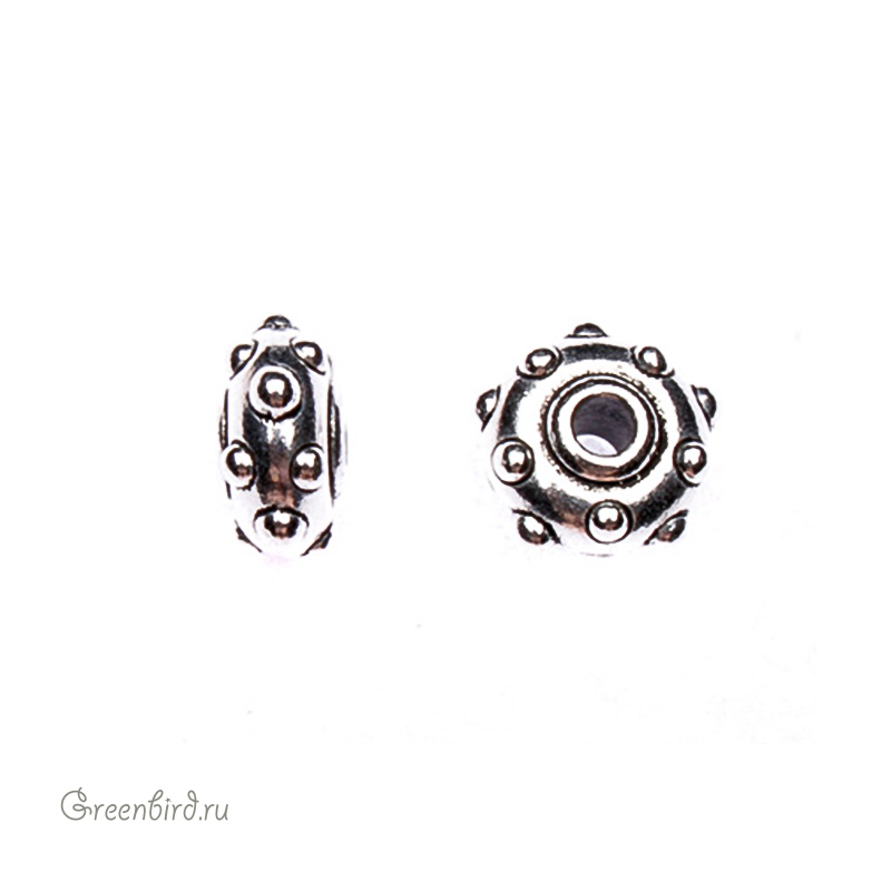Металлическая бусина. Цвет: античное серебро. Размер: 11 х 5 мм, отверстие: 2,5 мм. Цена указана за 1 шт.