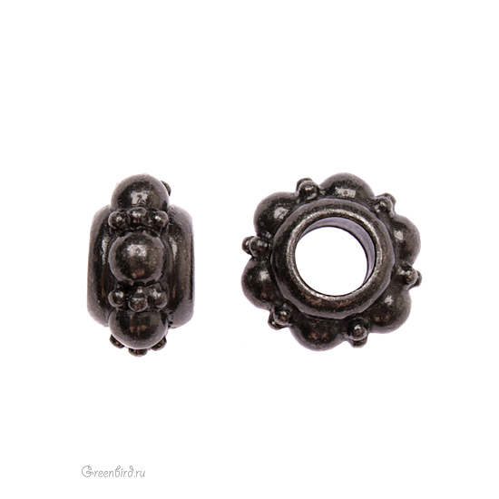 Металлическая бусина. Цвет: gunmetal (оружейная сталь). Размер: 10 х 6 мм, отверстие: 4 мм. Цена указана за 1 шт.