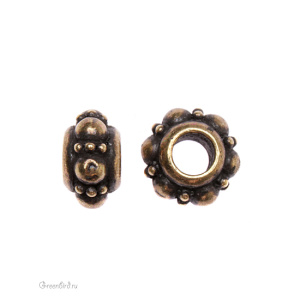Металлическая бусина. Цвет: античная латунь. Размер: 10 х 6 мм, отверстие: 4 мм. Цена указана за 1 шт.