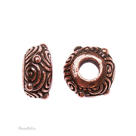 Металлическая бусина. Цвет: античная медь. Размер: 11 х 6 мм, отверстие: 4 мм. Цена указана за 1 шт.
