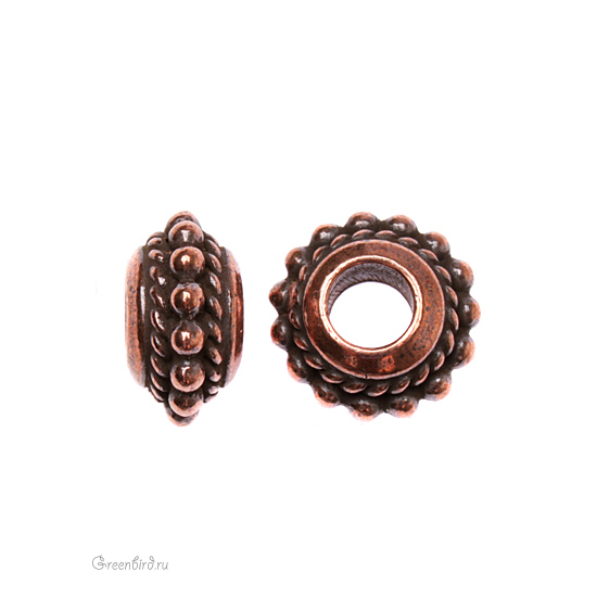 Металлическая бусина. Цвет: античная медь. Размер: 11 х 6 мм, отверстие: 4 мм. Цена указана за 1 шт.