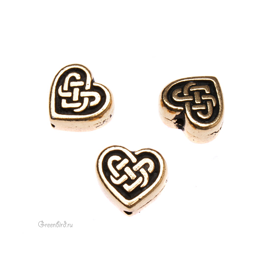 Металлическая бусина в форме сердца. Цвет: античное золото. Размер: 9 х 9 мм. Цена указана за 1 шт.