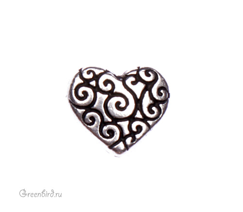 Металлическая бусина плоская в форме сердца. Цвет: античное серебро. Размер: 12 мм. Цена указана за 1 шт.