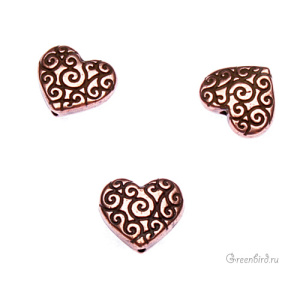 Металлическая бусина плоская в форме сердца. Цвет: античная медь. Размер: 12 мм. Цена указана за 1 шт.