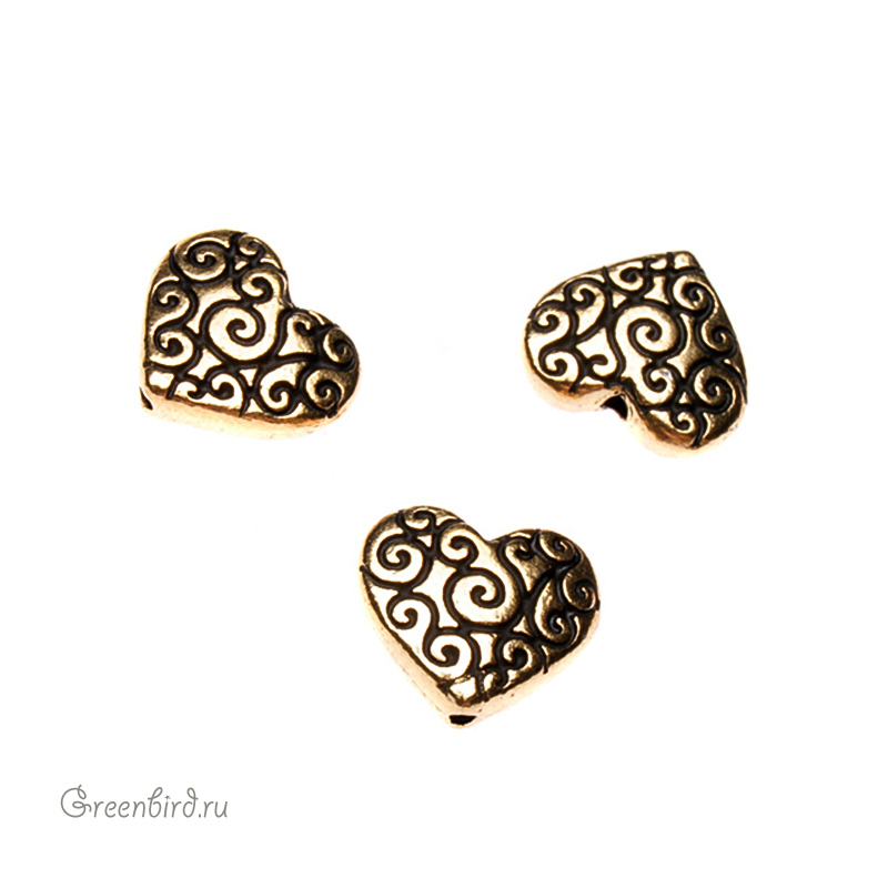 Металлическая бусина плоская в форме сердца. Цвет: античное золото. Размер: 12 мм. Цена указана за 1 шт.