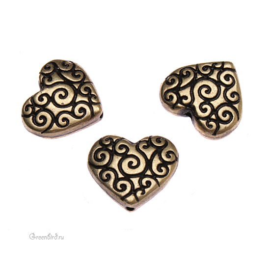 Металлическая бусина плоская в форме сердца. Цвет: античная латунь. Размер: 12 мм. Цена указана за 1 шт.