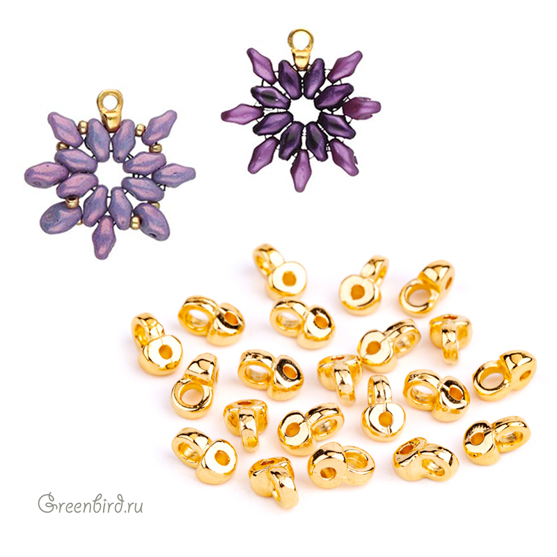 Металлический концевик CYMBAL "Remata" для работы с бусинами SuperDuo. Размер с колечком: 5,3 х 4,6 мм, отверстия для крепления: 0,8 мм, колечко: 1,6 мм. Материал: латунь, покрытие: золото 24K (24K Gold Plate). Производство: Греция. Цена указана за 1 шт.