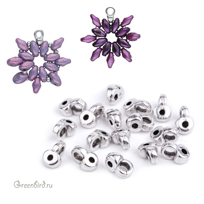 Металлический концевик CYMBAL "Remata" для работы с бусинами SuperDuo. Размер с колечком: 5,3 х 4,6 мм, отверстия для крепления: 0,8 мм, колечко: 1,6 мм. Материал: латунь, покрытие: античное серебро. Производство: Греция. Цена указана за 1 шт.