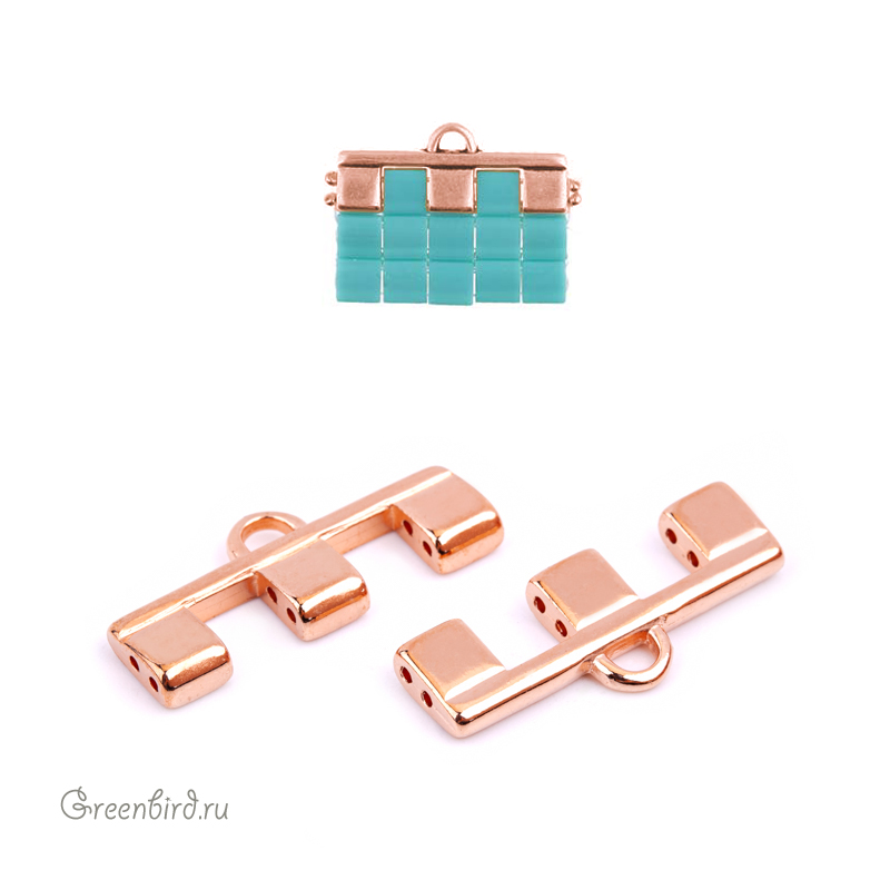 Металлический концевик CYMBAL "Piperi" на 5 нитей для работы с бусинами TILA. Размер с колечком: 26 х 10,5 x 3 мм, отверстия для крепления: 0,8 мм, колечко: 3 x 2 мм. Материал: латунь, покрытие: розовое золото. Производство: Греция. Цена указана за 1 шт.