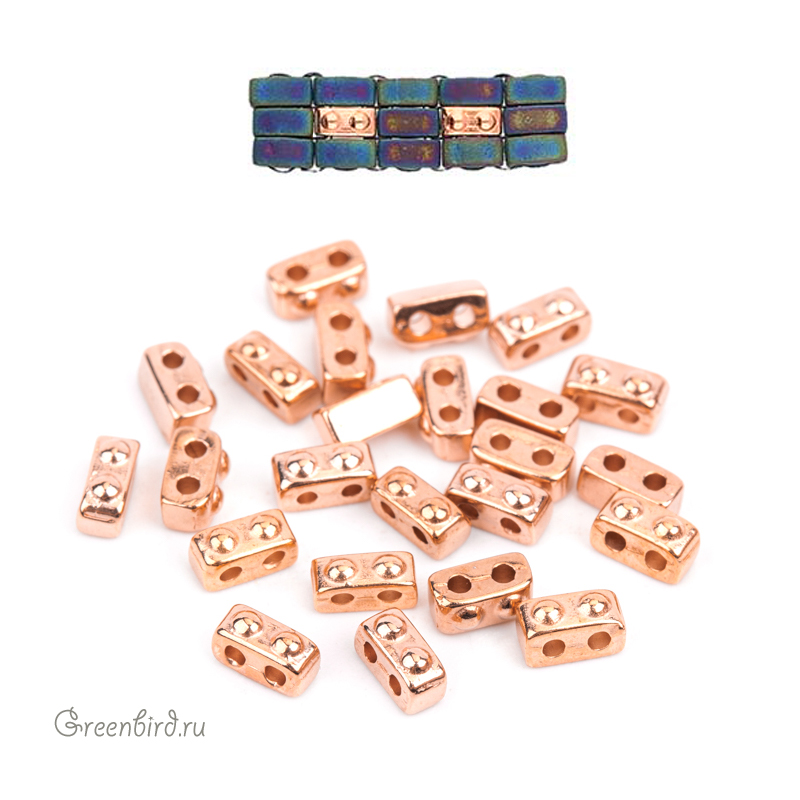 Металлическая бусина Half Tila CYMBAL "Ornos" с текстурированной лицевой стороной и гладкой оборотной. Размер: 4,8 х 2,8 х 2,1 мм, отверстия примерно 0,8 мм. Материал: латунь, покрытие: розовое золото. Производство: Греция. Цена указана за 1 шт.