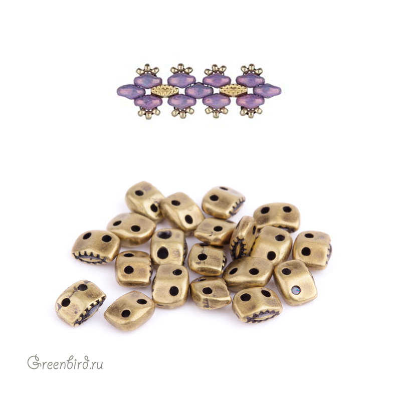 Металлическая бусина SuperDuo CYMBAL "Varidi" с текстурированной лицевой стороной и гладкой оборотной. Размер: 5,5 х 3,8 х 2,7 мм, отверстия примерно 0,8 мм. Материал: латунь, покрытие: античная латунь. Производство: Греция. Цена указана за 1 шт.