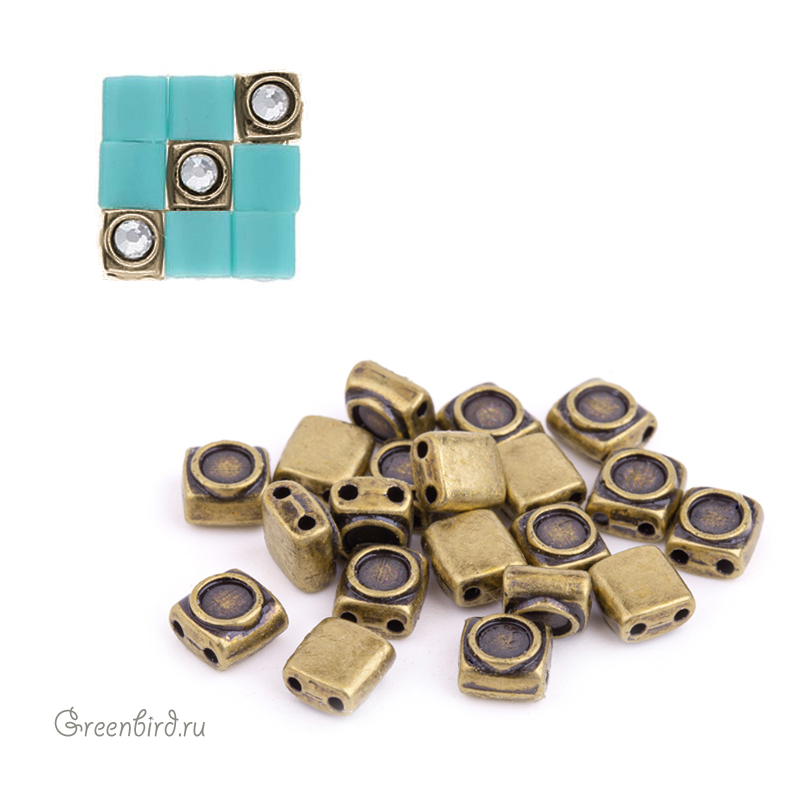 Металлическая бусина Tila CYMBAL "Peponas" с текстурированной лицевой стороной и гладкой оборотной. Текстурированную сторону можно использовать для вклейки страз арт. 2088 SS12 (3 мм). Размер: 5 х 5 мм, отверстия примерно 0,8 мм. Материал: латунь, покрытие: античная латунь. Производство: Греция. Цена указана за 1 шт.